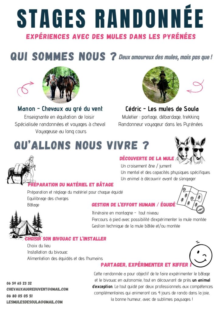 Expériences avec des mules dans les Pyrénées